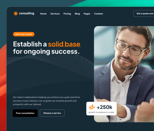 Consulting is a premium WordPress theme for professional business consultants made with Breakdance page builder plugin (pro version). Please note: Breakdance page builder plugin is not included in downloadable files and requires pro subscription.